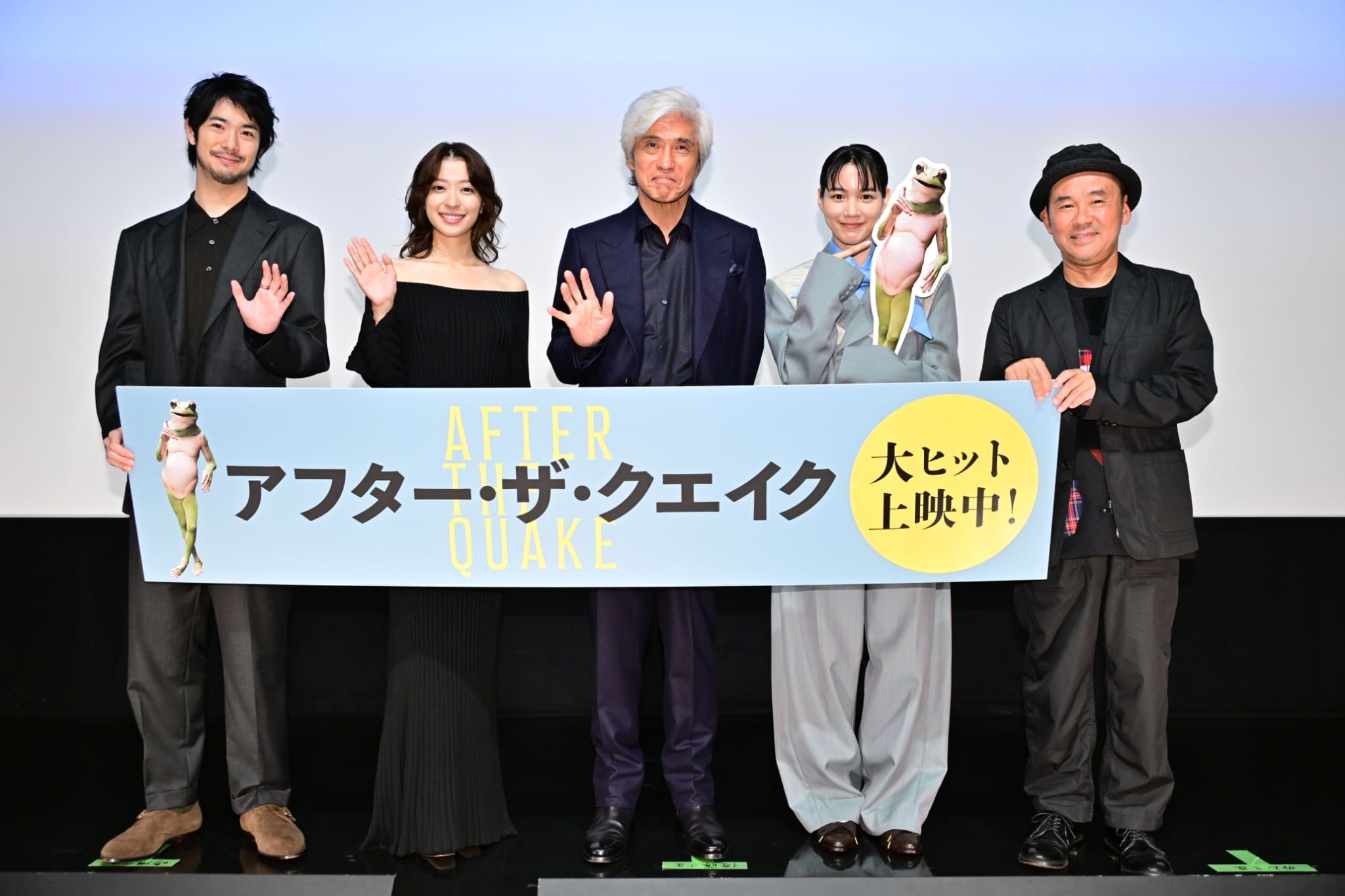 作家・村上春樹による短編集『神の子どもたちはみな踊る』を原作にした、映画『アフター・ザ・クエイク』がついに全国公開!初日翌日の10月4日にはテアトル新宿で公開記念舞台挨拶が実施され、出演者の鳴海唯さん、渡辺大知さん、佐藤浩市さん、のんさん、そして井上剛監督が登壇した。